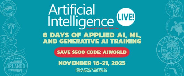 Join Artificial Intelligence Live! at Live! 360 Tech Con Orlando, Nov 16–21, 2025. Six days of AI, ML, and data sessions with top experts. Save $500 off standard pricing with code AIWORLD—secure your spot today!